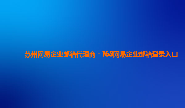 苏州网易企业邮箱代理商:163网易企业邮箱登录入口 尊敬的用户,您好!今天,我将为大家介绍一款非常优秀的企业邮箱服务——163网易企业邮箱。 一、网易企业邮箱的优势 163网易企业邮箱是中国知名互联网公司网易...