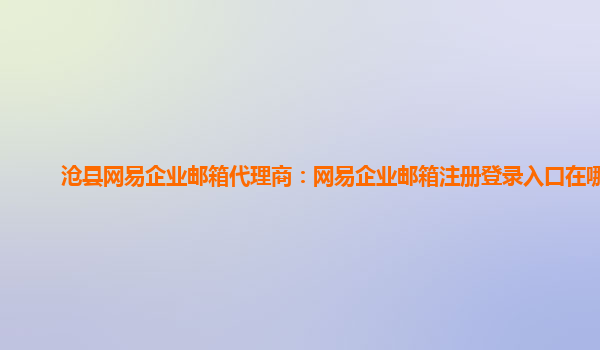2024-01-13网易企业邮箱注册登录入口在哪看 作为沧县的网易企业邮箱代理商,我们将介绍网易企业邮箱的优势,并简单明了地阐述注册登录入口在哪里。 网易企业邮箱的优势 可靠性:网易企业邮箱使用稳定、可靠的服...