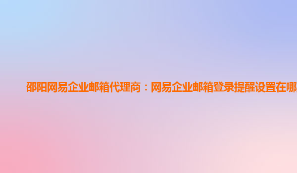 2024-01-13网易企业邮箱代理商:网易企业邮箱登录提醒设置在哪里找 作为一款专业、安全、稳定的企业级邮件服务,网易企业邮箱备受企业和机构的青睐。为了进一步提高用户的使用体验,网易企业邮箱提供了丰富的功能和设置,其...