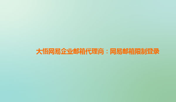 2024-01-12鄂州网易企业邮箱代理商:网易免费邮箱登录方法 作为鄂州网易企业邮箱的代理商,我们为您提供了网易免费邮箱登录的方法。在这篇文章中,我将向您展示网易企业邮箱的优势,并分享使用企业邮箱后的感受。 网易企业邮...