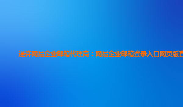 大兴安岭网易企业邮箱代理商:网易邮箱企业版 网易企业邮箱是一款专为企业用户打造的电子邮件服务,其提供稳定可靠的邮件发送和接收功能,以及强大的企业管理工具。作为网易企业邮箱代理商,我们可以为您提供以下优...