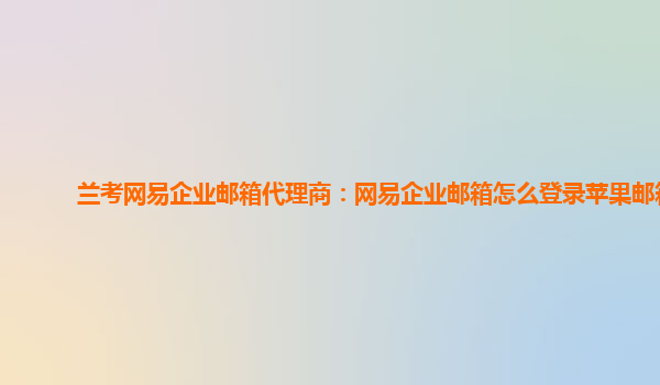 2024-01-11兰考网易企业邮箱代理商:网易企业邮箱怎么登录苹果邮箱 作为兰考地区的网易企业邮箱代理商,我们将为您详细介绍如何将网易企业邮箱登录到苹果邮箱上,并分享使用企业邮箱后的感受。 一、如何登录苹果邮箱 登录苹...