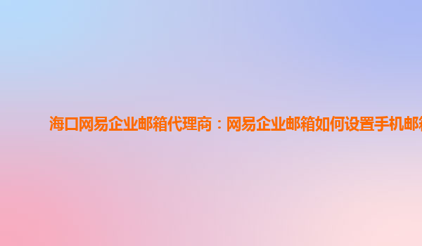 2024-01-11网易企业邮箱如何设置手机邮箱 作为海口网易企业邮箱的代理商,我们了解到许多用户在使用网易企业邮箱时都非常关心如何设置手机邮箱。以下是一个简单的步骤指南,帮助您轻松地设置网易企业邮箱的手机邮箱。 ...