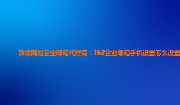 2024-01-11敦煌网易企业邮箱代理商:163企业邮箱手机设置怎么设置 网易企业邮箱是一款功能强大、稳定可靠的企业邮箱服务,而敦煌网易企业邮箱代理商提供专业的企业邮箱服务。在使用163企业邮箱时,我们可以通过手机设置来方便...