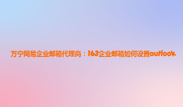 2024-01-11万宁网易企业邮箱代理商:163企业邮箱如何设置outlook 简介 本文将介绍如何在Outlook中正确设置使用163企业邮箱,并说明网易企业邮箱的优势。 设置步骤 打开Outlook软件,点击菜单栏中的“工具”...
