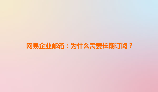 为什么选择网易企业邮箱?长期订阅的优势分析