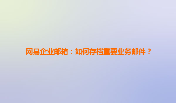 如何存档重要业务邮件?—结合网易企业邮箱与网易企业邮箱代理商的优势