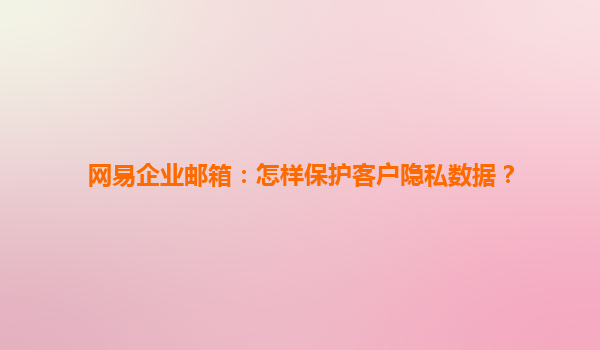 网易企业邮箱:怎样保护客户隐私数据?