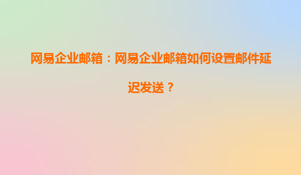 网易企业邮箱:网易企业邮箱如何设置邮件延迟发送?