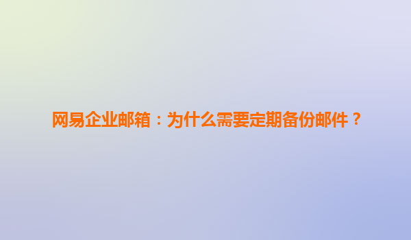 网易企业邮箱:为什么需要定期备份邮件?