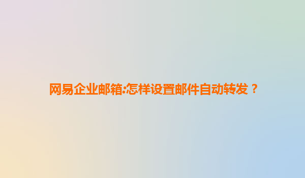 网易企业邮箱:怎样设置邮件自动转发?