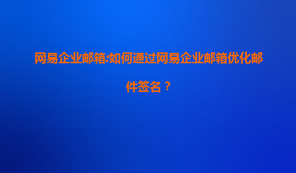 网易企业邮箱:如何通过优化邮件签名提升企业形象