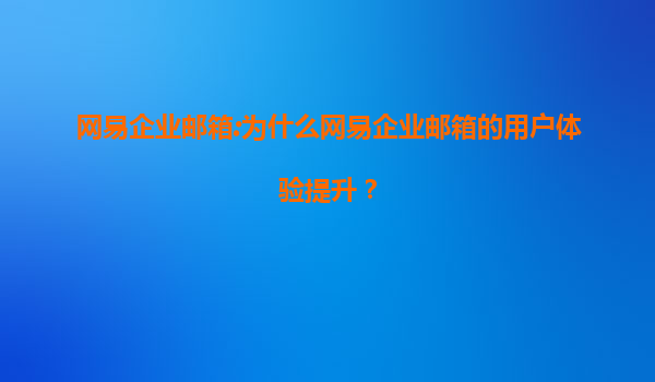 网易企业邮箱:为什么网易企业邮箱的用户体验提升?