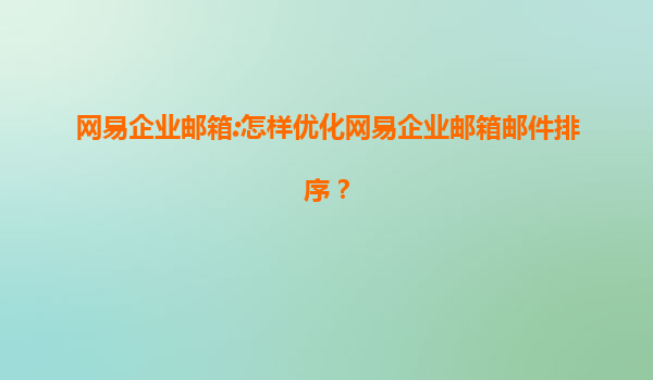 网易企业邮箱:怎样优化网易企业邮箱邮件排序?