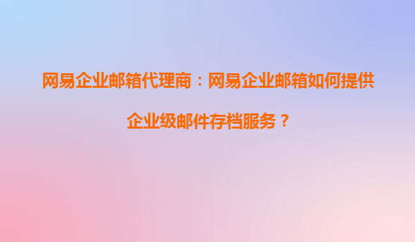 网易企业邮箱代理商:网易企业邮箱如何提供企业级邮件存档服务?