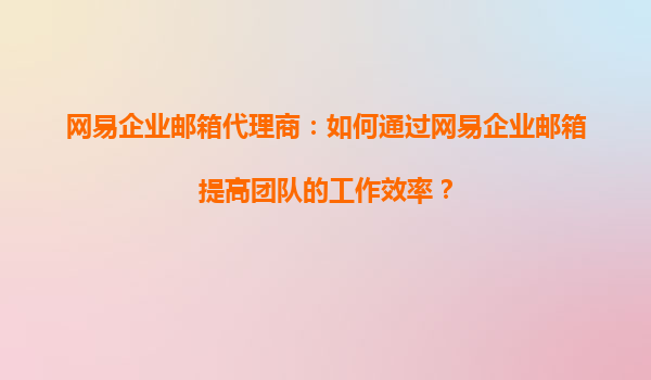 网易企业邮箱代理商:如何通过网易企业邮箱提高团队的工作效率?