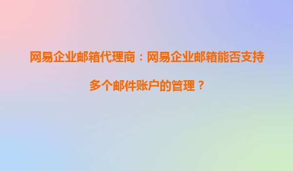 网易企业邮箱代理商:网易企业邮箱能否支持多个邮件账户的管理?