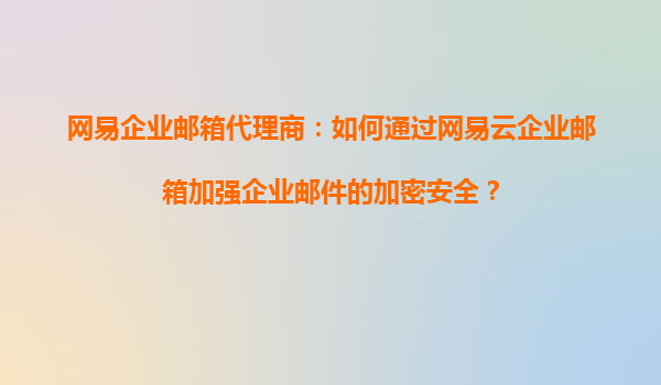 网易企业邮箱代理商:如何通过网易云企业邮箱加强企业邮件的加密安全?