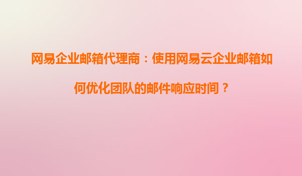 网易企业邮箱代理商:使用网易云企业邮箱如何优化团队的邮件响应时间?