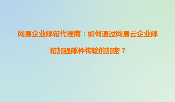 网易企业邮箱代理商:如何通过网易云企业邮箱加强邮件传输的加密?