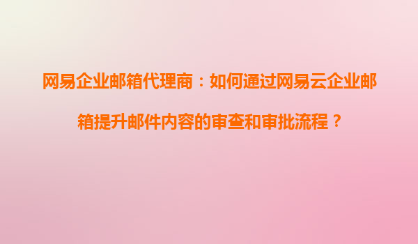 网易企业邮箱代理商:如何通过网易云企业邮箱提升邮件内容的审查和审批流程?