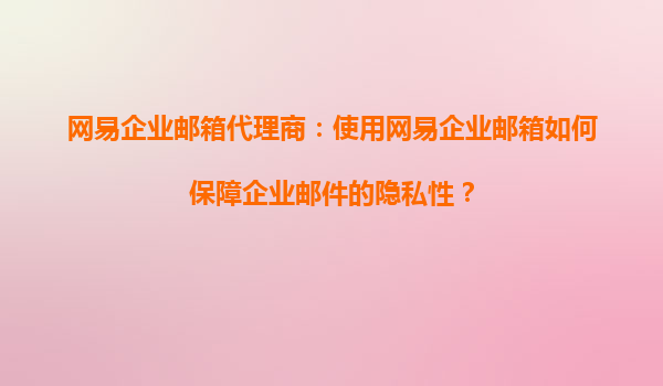 网易企业邮箱代理商:使用网易企业邮箱如何保障企业邮件的隐私性?