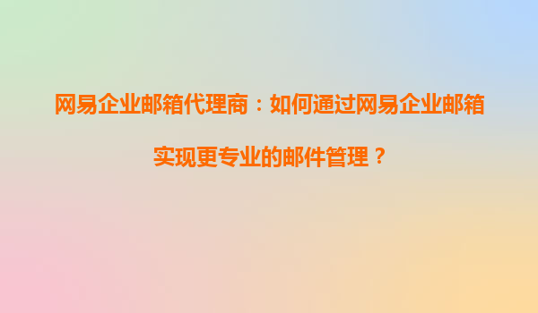 网易企业邮箱代理商:如何通过网易企业邮箱实现更专业的邮件管理?