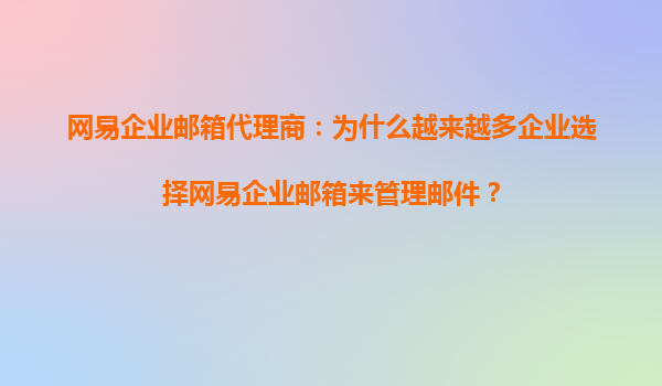 网易企业邮箱代理商:为什么越来越多企业选择网易企业邮箱来管理邮件?