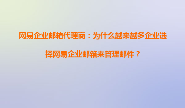网易企业邮箱代理商:为什么越来越多企业选择网易企业邮箱来管理邮件?