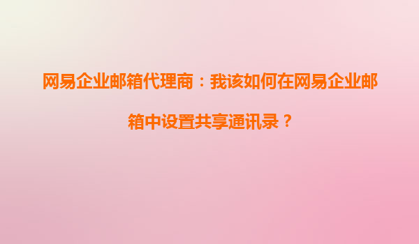 网易企业邮箱代理商:我该如何在网易企业邮箱中设置共享通讯录?