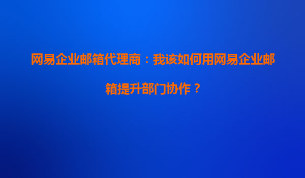 网易企业邮箱代理商:我该如何用网易企业邮箱提升部门协作?