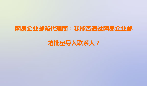 网易企业邮箱代理商:我能否通过网易企业邮箱批量导入联系人?