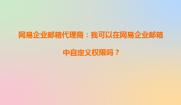 网易企业邮箱代理商:我可以在网易企业邮箱中自定义权限吗?