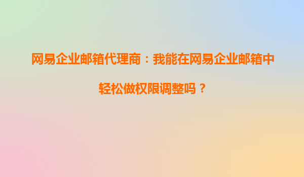 网易企业邮箱代理商:我能在网易企业邮箱中轻松做权限调整吗?