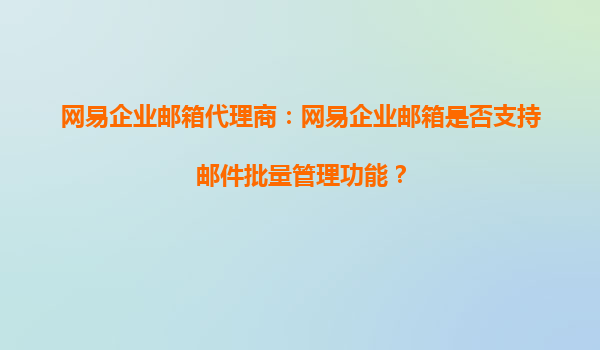 网易企业邮箱代理商:网易企业邮箱是否支持邮件批量管理功能?
