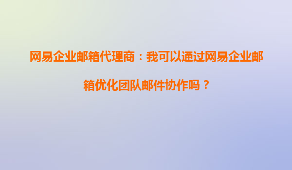 网易企业邮箱代理商:如何通过网易企业邮箱优化团队邮件协作?