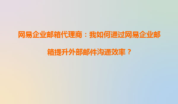 网易企业邮箱代理商:我如何通过网易企业邮箱提升外部邮件沟通效率?