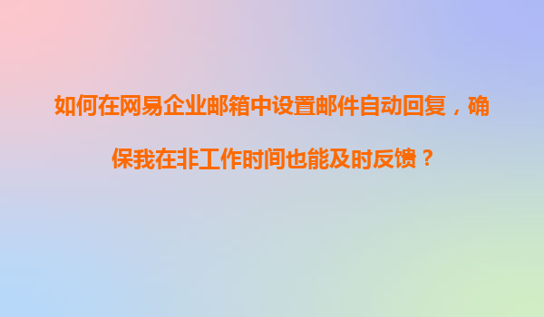 如何在网易企业邮箱中设置邮件自动回复,确保我在非工作时间也能及时反馈?