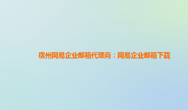 宿州网易企业邮箱代理商:网易企业邮箱的优势和好用之处
