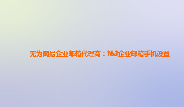 无为网易企业邮箱代理商:163企业邮箱手机设置