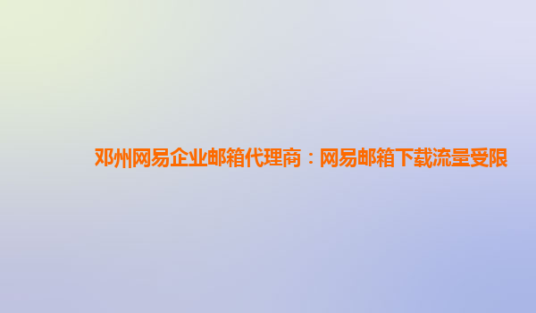 邓州网易企业邮箱代理商表示,最近网易邮箱下载流量受限。然而,网易企业邮箱却有许多优势和好用之处。