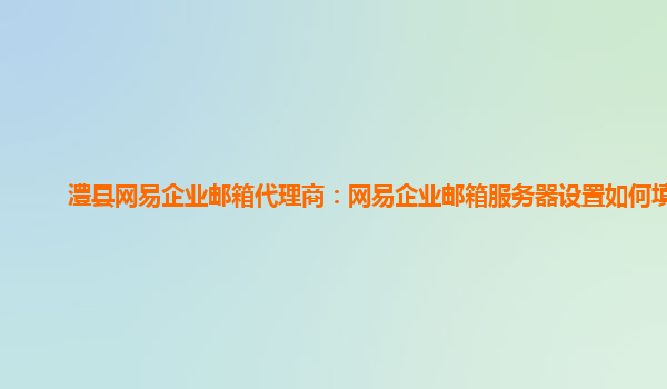 澧县网易企业邮箱代理商:网易企业邮箱服务器设置如何填写