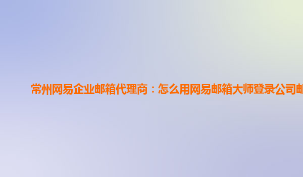 常州网易企业邮箱代理商:怎么用网易邮箱大师登录公司邮箱
