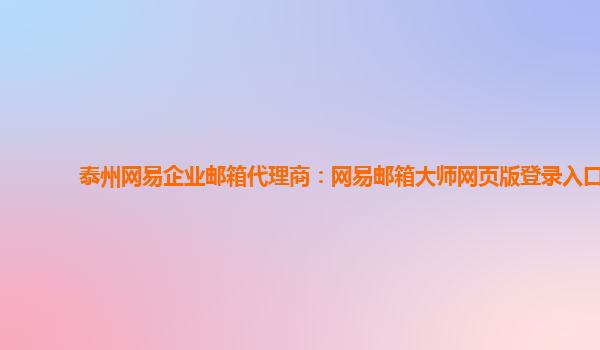 泰州网易企业邮箱代理商:网易邮箱大师网页版登录入口