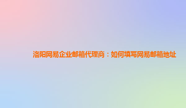 洛阳网易企业邮箱代理商:如何填写网易邮箱地址