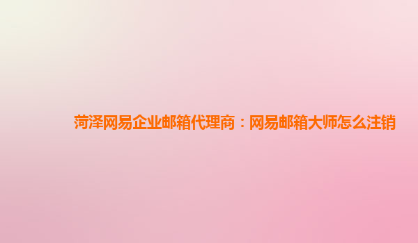 菏泽网易企业邮箱代理商:网易邮箱大师怎么注销