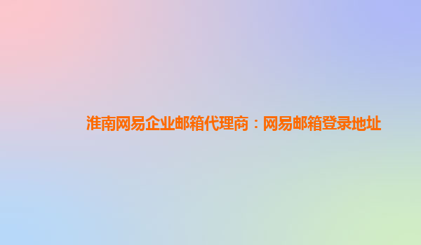 淮南网易企业邮箱代理商:网易邮箱登录地址