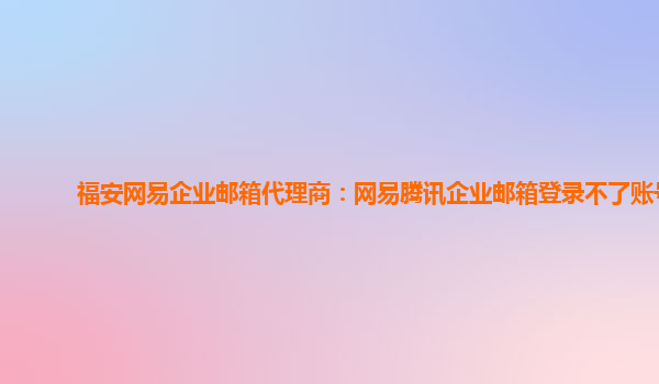 网易企业邮箱代理商:解决网易腾讯企业邮箱登录问题