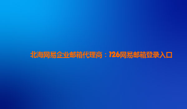 北海网易企业邮箱代理商:126网易邮箱登录入口