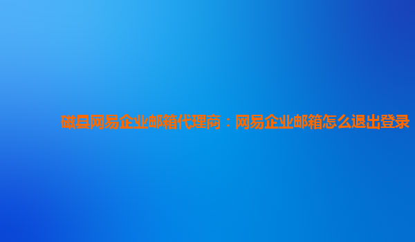 网易企业邮箱代理商:网易企业邮箱怎么退出登录